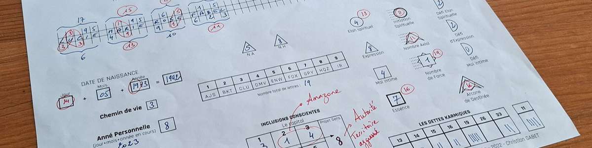 Je vous propose cette formation de 2 jours qui vous permettra de réaliser ce bilan en numérologie et psychognénéalogie pour vous et vos proches afin de mettre en lumière et surtout pouvoir vous libérer des dettes familiales.